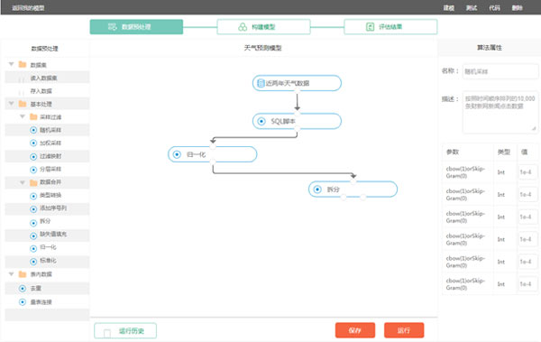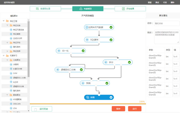 用戶全程無(wú)需編寫(xiě)代碼即可完成機(jī)器學(xué)習(xí)計(jì)算任務(wù)。友好的WEB交互式界面,用戶可選擇算法,搭建包含數(shù)據(jù)預(yù)處理、特征工程及機(jī)器學(xué)習(xí)算法的工作模型,填寫(xiě)算法參數(shù)并選擇計(jì)算資源,即可完成所設(shè)定的工作流程,由服務(wù)器計(jì)算任務(wù)結(jié)果并展示結(jié)果。