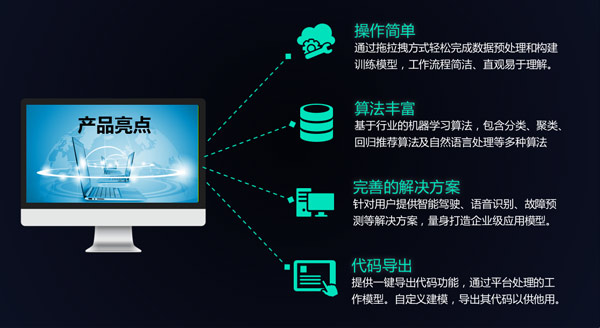 普開(kāi)人工智能實(shí)驗(yàn)室——操作簡(jiǎn)單、算法豐富、支持代碼導(dǎo)出,提供多種企業(yè)應(yīng)用級(jí)模型,基于行業(yè)的機(jī)器學(xué)習(xí)多種算法,通過(guò)拖拉拽方式輕松完成數(shù)據(jù)預(yù)處理和構(gòu)建訓(xùn)練模型,流程簡(jiǎn)潔,直觀易懂,還體用一鍵導(dǎo)出代碼功能,通過(guò)平臺(tái)處理的工作模型自定義建模。