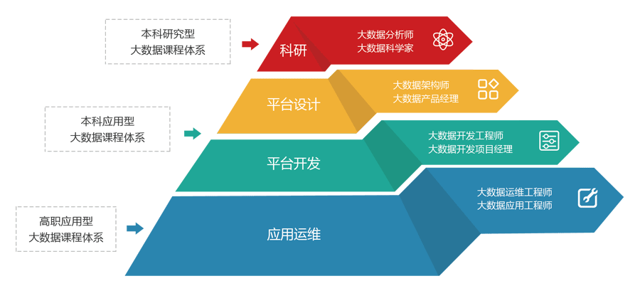 大數據課程體系結合大數據產業環境、崗位模型、企業人才需求,設置了本科應用型、本科研究型、高職三大課程體系,針對每門課程提供教學實驗指導手冊、在線視頻、資源包、實驗示例代碼等,讓學生學以致用;不僅學習大數據技術的基本理論和原理,還可學習大數據平臺架構的技術實現及其在行業內的典型應用。