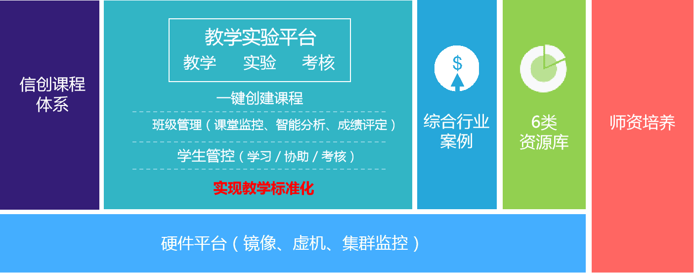 提供完善課程體系、在線學習系統(tǒng),以信創(chuàng)課程學習、在線視頻、習題、線上測試、線上實驗為主線,典型案例貫穿知識點的學習模式,確保學生掌握信創(chuàng)項目技能。